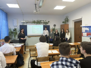 Россия – многонациональное государство. Каждая нация – это неповторимая культура, история, традиции и, конечно же, язык. Более 130 языков звучат в нашей стране. Об этом и шла речь на классном часе, ведущие: Макраслоева Анна, Ожерельева Валерия, Тюлькин Роман, Андреева Екатерина, Макарьева Виктория и преподаватель русского языка и литературы Афанасьева Е.Г. – рассказывали ребятам про историю праздника, про живые и мертвые языки, про основные функции языка и т.д.