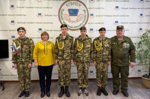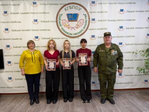 Но в этот раз она была отмечена еще одним торжественным событием – на линейке присутствовал руководитель Алтайского краевого отделения Союза Добровольцев Донбасса им. Богдана Пилицина Веснер Е.В. В своей речи он отметил вклад наших студентов и преподавателей в дело защиты Родины и вручил заслуженные награды: Иксанов Николай (группа 231), Извосков Дмитрий и Миненков Кирилл (группа 112) и Стребков Александр (группа 110) были награждены медалями «Патриот России», а студентки группы 311 Маскачакова Полина, Попова София, Серебренникова Валерия и Шаламова Анастасия были отмечены благодарностями за активную жизненную позицию, за содействие и помощь в организации плетения маскировочных сетей.
